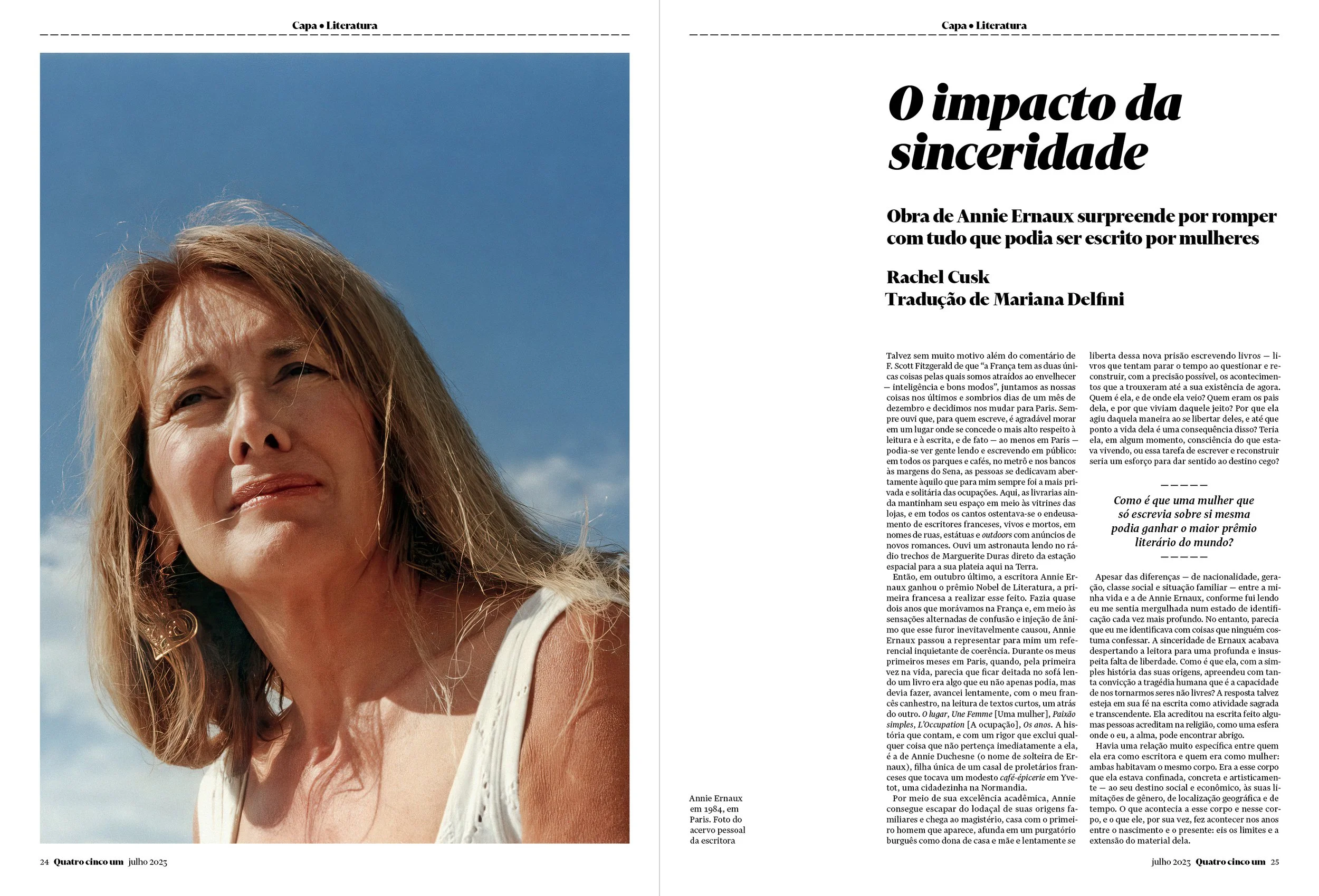 Perfil publicado na The New York Times Magazine em 5 de maio de 2023, com o título “Annie Ernaux Has Broken Every Taboo of What Women Are Allowed to Write”